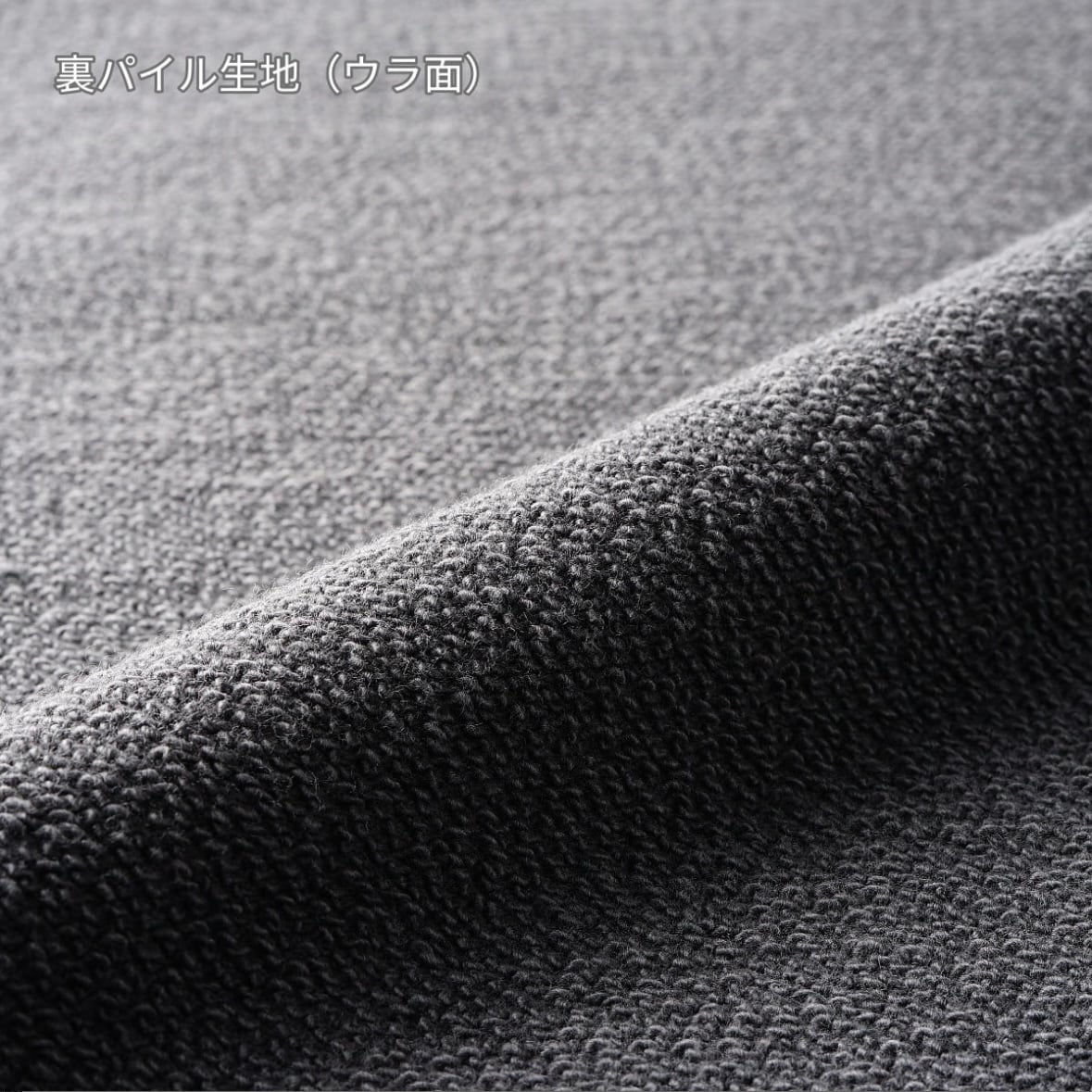 裏糸にオープンエンド糸を使用し、ピグメント染めのヴィンテージ感のある色合いと、オープンエンド糸のざっくりとしたシャリ感のある肌触り、古着のようなこだわりのスウェット生地です。